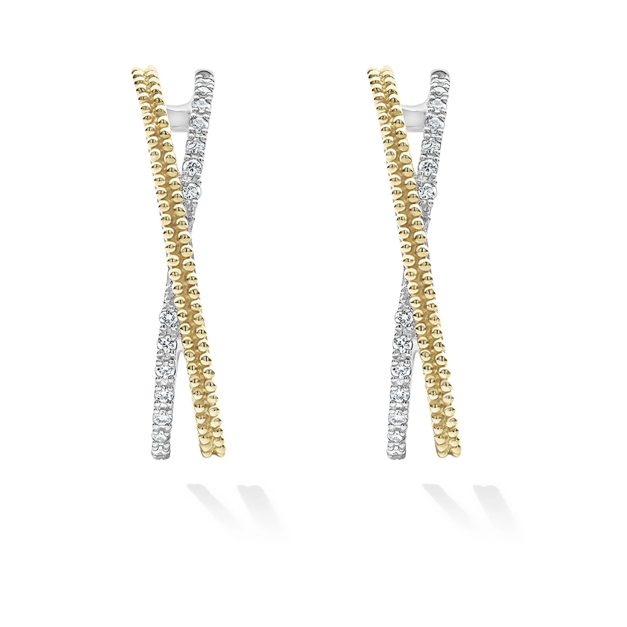 Diamonds, 18K gold Caviar beading and sterling silver form these classic X-motif hoop earrings. LAGOS diamonds are the highest quality natural stones.