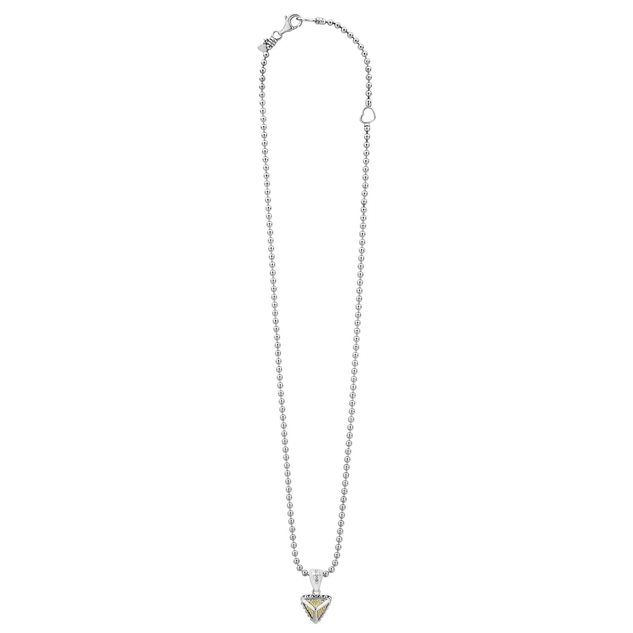 An 18K gold Caviar pyramid forms this pendant on a sterling silver ball chain necklace.