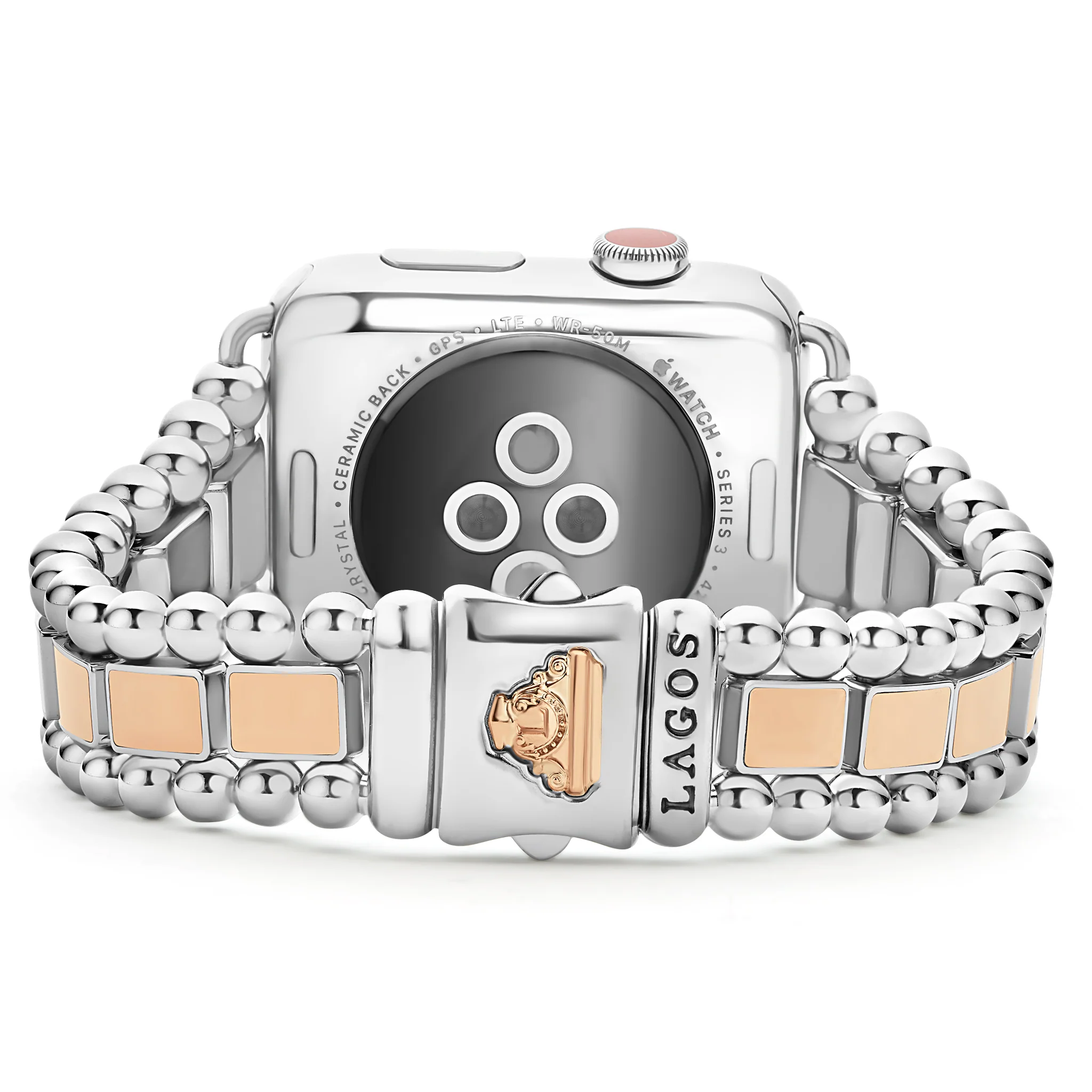 Created exclusively for your Apple Watch®, this watch bracelet is crafted from 18K rose gold and stainless steel links. Watch face sold separately.